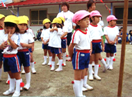 | ●体操教室 スポーツクラブの先生の指導のもとに、自立・自学自習を目指し、年齢別に心の力・学ぶ力・体の力を養っていきます。運動神経に大きく関係する小脳は6歳までに完成すると言われています。少し難しい動きを入れながら、体操を通して、小脳の完成を100%まで伸ばしていきます。 |